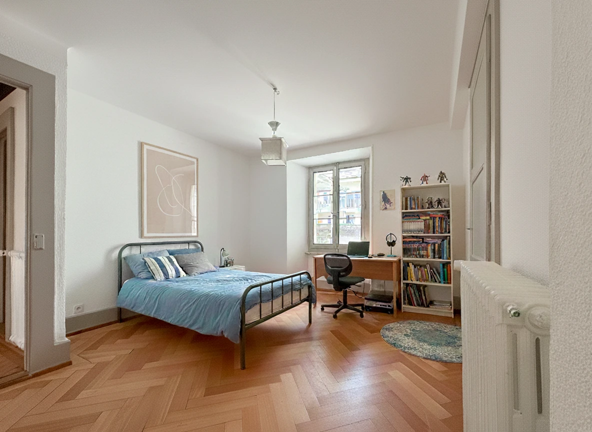 Classé et chargé d’histoire, l’immeuble protégé a été rénové avec soin afin de marier le charme de l’ancien au confort moderne. Les parquets d’époque, restaurés avec goût, confèrent chaleur et authenticité à chaque pièce, tandis que les murs épais assurent une excellente isolation phonique et un cadre de vie paisible.