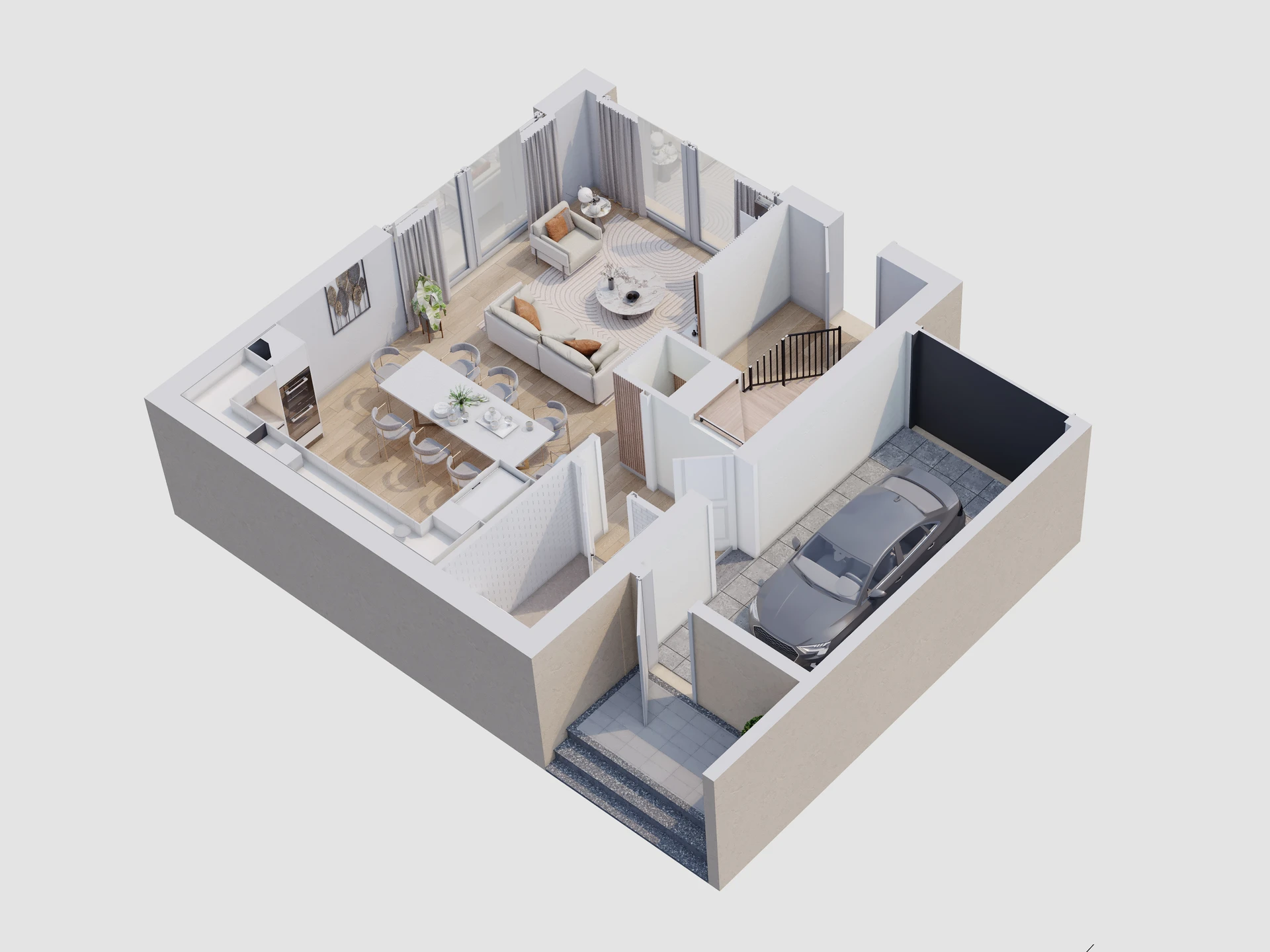 - Cuisine ouverte sur un vaste séjour avec accès direct à la terrasse/jardin