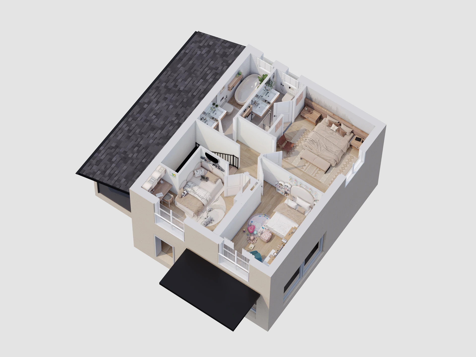 - 3 chambres à coucher, dont une suite parentale avec salle de douche/WC privative